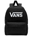 Sac à dos Vans classique en noir, avec un grand logo blanc brodé sur le devant.