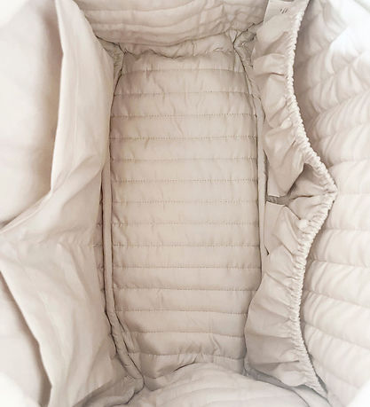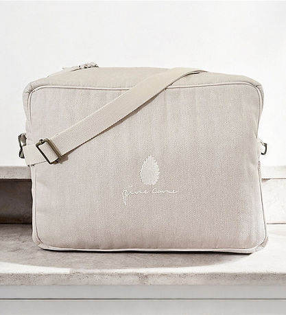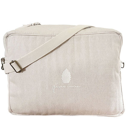 Le sac à langer Pine Cone a une forme carrée et s'ouvre en haut avec une fermeture éclair. Le Sac à langer se compose d'un grand compartiment avec une doublure beige. D'un côté il y a deux poches avec bords élastiques et de l'autre côté il y a une poche ouverte pour divers petits objets. À l'extérieur, le sac à langer comporte une petite poche à chaque extrémité.
