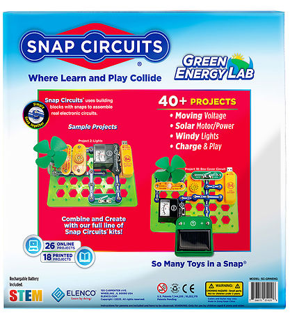 Le jouet Snap Circuits enseigne aux enfants les bases de l'électronique tout en s'amusant. Avec cet set, il sera possible de construire plus de 40 projets différents tels que des éoliennes et des cellules solaires.