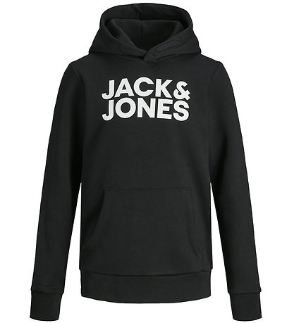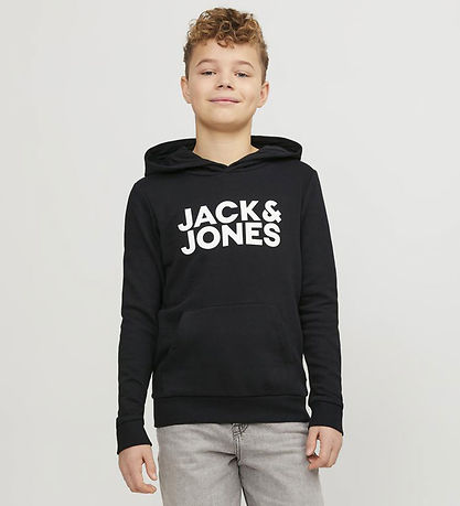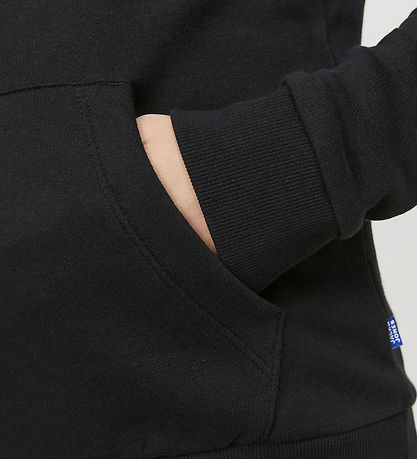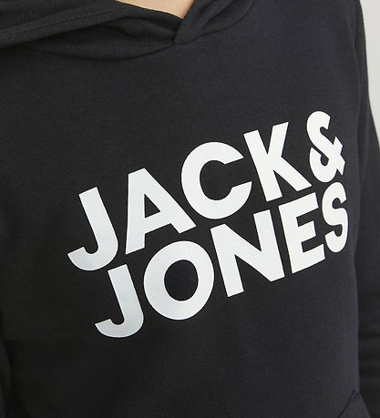 sweat à capuche Smart Jack & Jones de couleur noire avec un grand imprimé logo sur le devant en blanc. Ce sweat à capuche allie style et confort, ce qui en fait un excellent choix pour un usage quotidien.