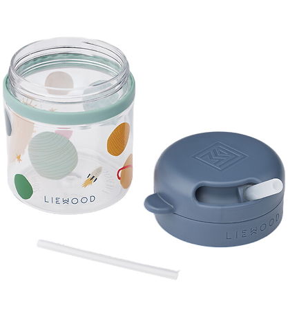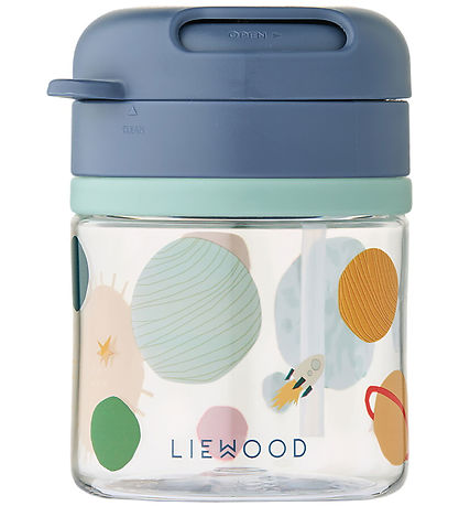 Tasse Smart Liewood en bleu avec un imprimé planète coloré.