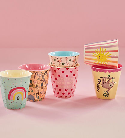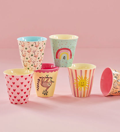 Tasses Cool Rice vendues en 6 Pack, où chaque tasse a son propre imprimé et motif coloré et attrayant.