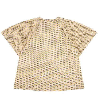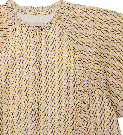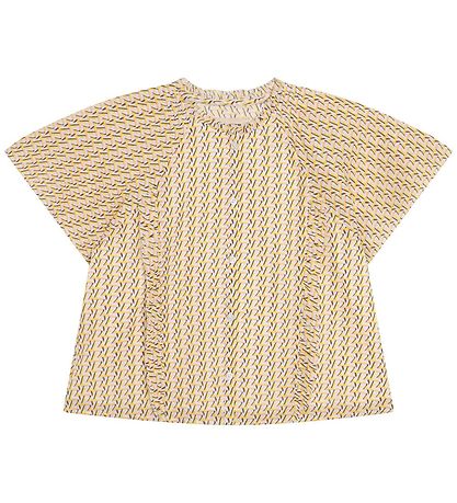 Le Zadig & Voltaire possède des manches courtes d'une bonne largeur. Dans l'ouverture du cou, il a un joli borde à volant, et sur les côtés du devant, il a également de jolis froufrous. Le haut s'ouvre sur tout le devant avec de petits boutons blancs et il est confectionné dans une qualité légère et étroitement tissée.