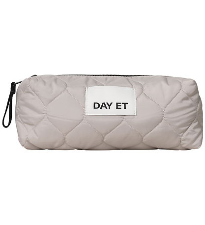 Trousse Smart DAY ET dans une teinte gris-beige avec une structure matelassée et une étiquette en tissu blanc avec le texte "DAY ET " sur le devant. La trousse DAY ET se compose d'un grand Rum qui s'ouvre par une fermeture éclair sur le dessus.