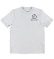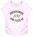 T-shirt tendance Abercrombie & Fitch gris chiné avec logo et texte brodés bleu marine sur le devant. Ce T-shirt présente une encolure tour à bords côtelés et des manches courtes. Il est confectionné dans un tissu très doux.