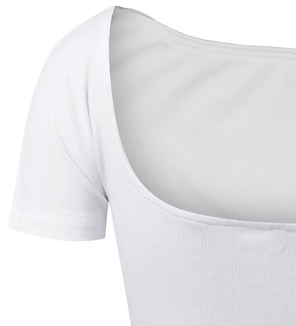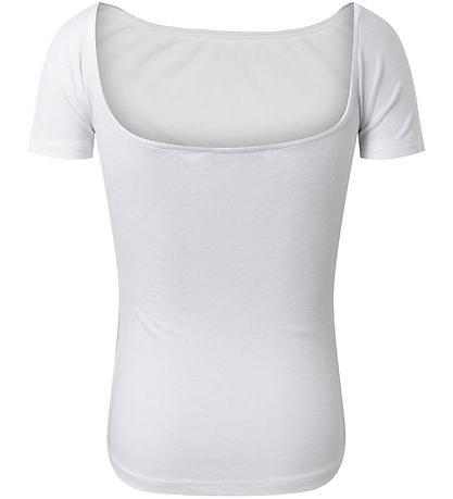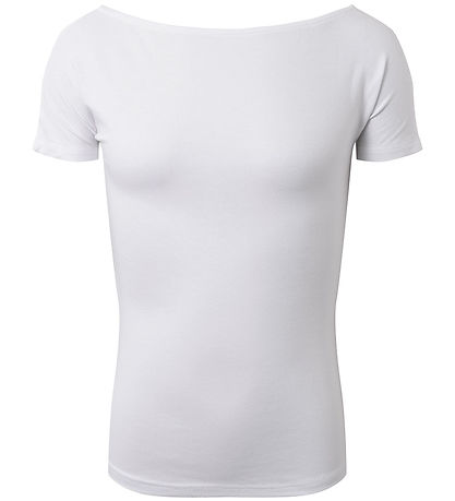 Joli t-shirt Hound blanc avec une jolie encolure bateau qui monte haut sur le devant et descend jusqu'aux omoplates dans le dos.