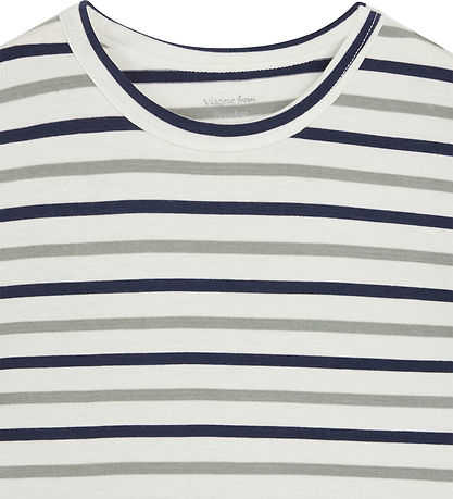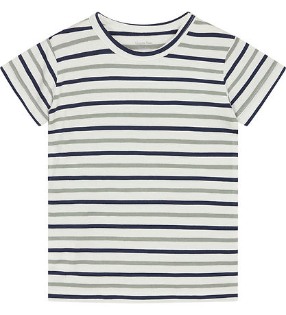 Magnifique t-shirt Hust and Claire dans un beige clair avec des détails rayés bleu marine et vert. Le T-shirt est détaillé avec une combinaison de couleurs classique, parfaite pour un style décontracté.