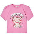 Joli t-shirt Mads Nørgaard en rose avec motif batik et imprimé logo en blanc sur le devant.