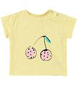 Le t-shirt Soft Gallery possède des manches courtes avec des bords élastiques qui forment de jolies manches bouffantes. Au niveau du cou, il y a de jolis détails plissés et il s'ouvre au niveau du cou avec un bouton pratique. Sous le t-shirt, vous pouvez enfiler le joli top, qui est confectionné dans une qualité tissée serrée.