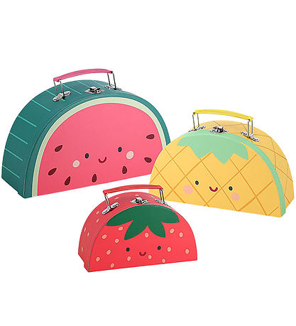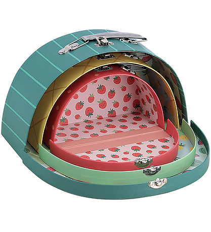 Magnifique valise en carton Vilac avec 3 valises colorées au design créatif de fruits. Ensemble contient :