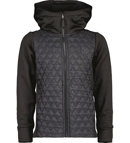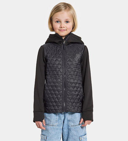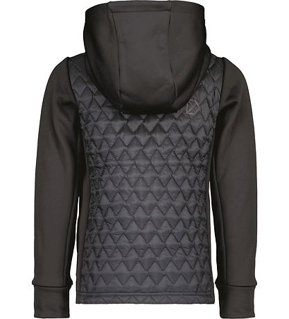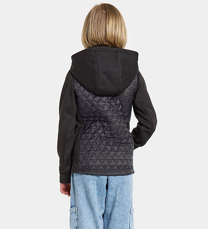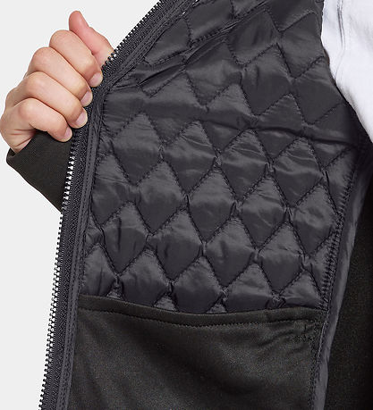 Belle veste softshell Didriksons en noir. Le Corps est dans une matière tissu lisse avec une structure ondulée et matelassé, tandis que le reste est en softshell.