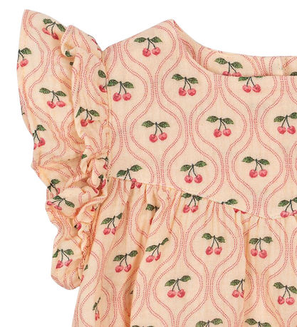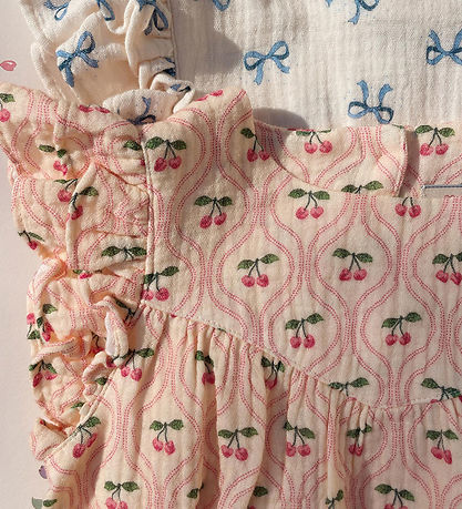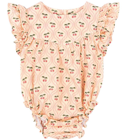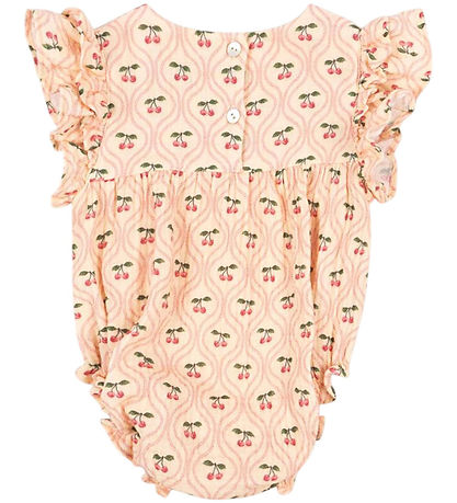 barboteuse d'Été délicat Konges Sløjd avec un magnifique imprimé cerise dans des tons roses.