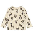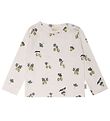 Élégant blouse Petit Piao à manches longues, orné d'un élégant motif rayé ivoire blanc et rose. Chemisier présente une encolure tour et À boutons poussoirs pratiques sur une épaule.