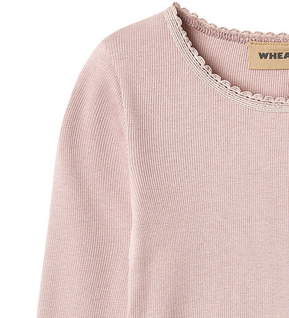 Ravissant blouse Wheat d' un violet cendré clair à la structure côtelée. Chemisier présente une encolure tour bordée d'une fine dentelle. Ses manches longues sont ornées de bords ondulés à l'ouverture des manches et de la taille. Chemisier est confectionné dans un doux mélange de coton biologique et de modal.