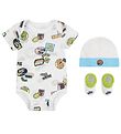 Les justaucorps Nike ont des manches courtes et des épaules repliées. Il y a des bords côtelés étroits au niveau des ouvertures de jambes du gorge et des jambes. Entre les jambes se trouvent à boutons poussoirs pratiques.