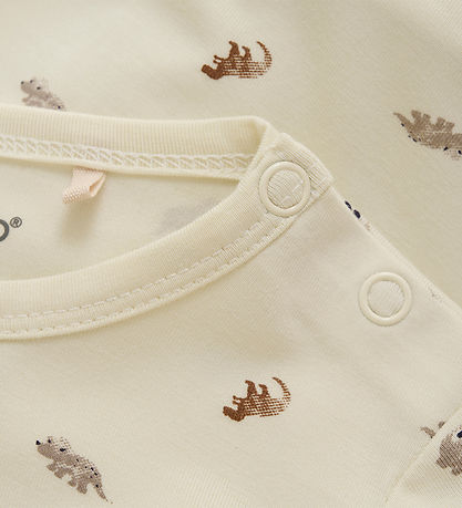 Le justaucorps Minymo a des manches longues et s'ouvre avec à boutons poussoirs pratiques sur l'épaule gauche et entre les jambes. À toutes les ouvertures, il y a des bords côtelés étroits et le justaucorps est fait d'une qualité douce et délicieuse.