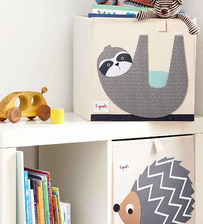 boîte de rangement Smart 3 Sprouts avec un motif de paresseux. La boîte a une forme carrée et carrée.