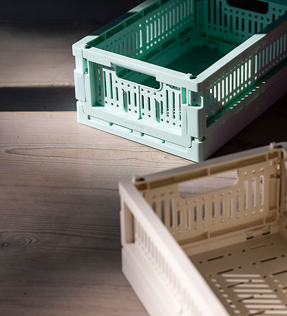 La Made Crate s'assemble en cliquant tous les coins ensemble, et elle se plie à nouveau facilement. La boîte pliante peut être utilisée pour rangement par ex. créations, vêtements, bibelots, jouets, produits de soins et/ou autre chose. Aux deux extrémités se trouvent des poignées pratiques et la boîte pliante peut être empilée avec plusieurs de la même taille.
