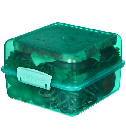 boîte à repas Smart Sistema en plastique turquoise, et la boîte à repas a une capacité maximale de 1,4 l.