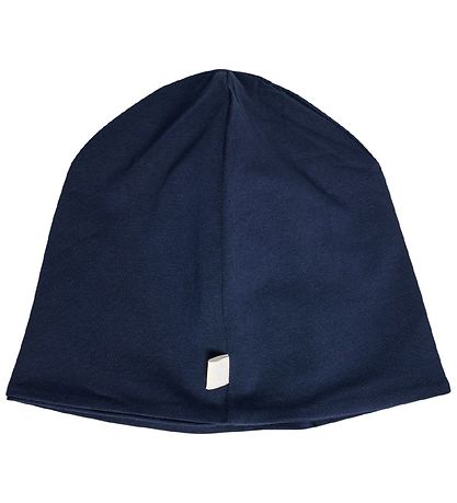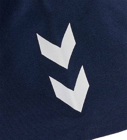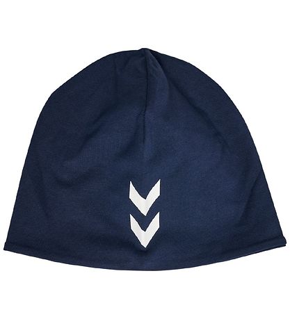 Joli bonnet Hummel de bleu marine avec un imprimé de deux chevrons Hummel blancs sur le devant.