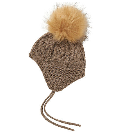 Le bonnet Name It se compose de deux couches, dont la couche extérieure est en laine tricotée et la couche intérieure est en coton doux. Au niveau des oreilles se trouve une couche supplémentaire qui rend le bonnet coupe-vent. Le Bonnet est noué sous le menton grâce à À cordon pratiques et, en haut, se trouve un pompon beige amovible en faux cuir fourrure.