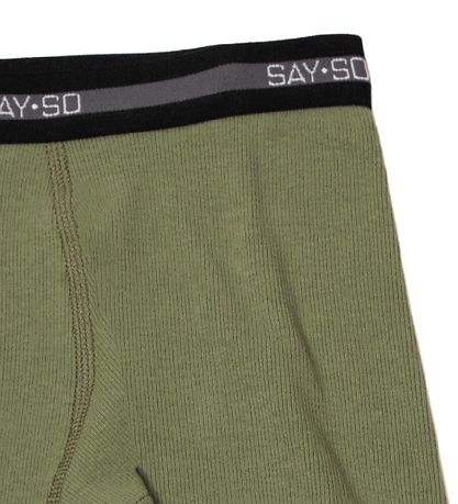 Joli boxers Say-So en vert militaire cendré avec une fine structure côtelée. Dans la queue se trouve un bord élastique noir avec le nom " Say-So" tout autour.