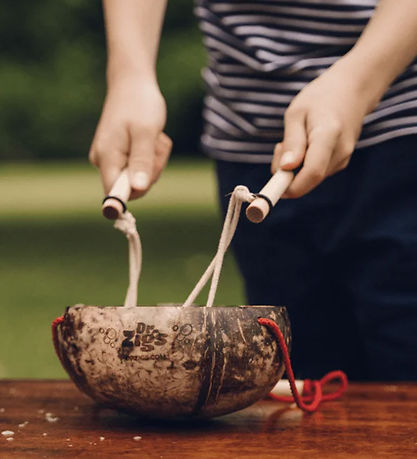 set de bulles de savon Cool Dr Zigs composé d'un bol en noix de coco, de deux bâtons, d'une ficelle et du savon Dr Zigs pour bulles de savon de 100 ml.