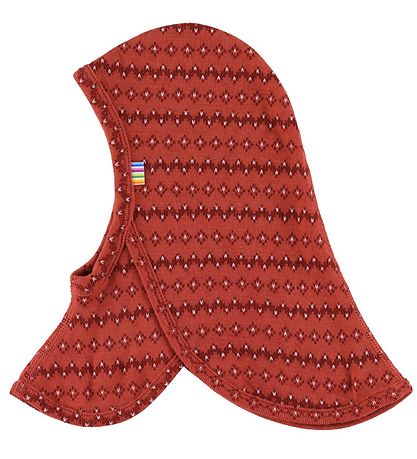 Délicieux chapeau d'éléphant Joha de noisette avec un motif en rouge foncé et blanc.