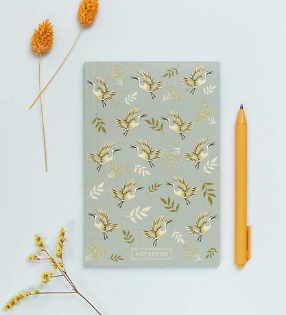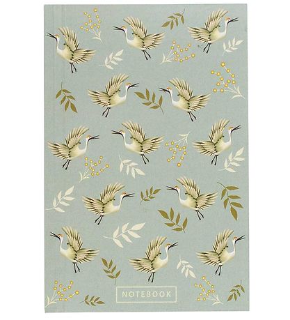 Magnifique carnet Vissevasse d' un bleu-vert clair avec un fin imprimé complet d'oiseaux et de feuilles.