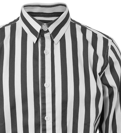 La chemise Hound a un collier classique et des manches longues à bords larges et deux boutons de manchette. Il s'ouvre sur le devant par des boutons blancs.