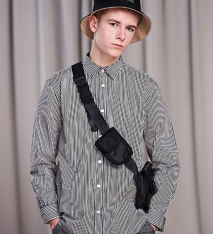chemise Smart Hound à fines a rayures verticales noir et blanc. Sur la set supérieure du dos, les rayures sont horizontales.