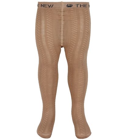 Magnifique collants The New Siblings de beige de couleur unie, avec le nom et le logo de la marque en noir à la taille.