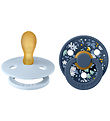 Magnifiques tétine BIBS, vendues dans un 2 Pack en bleu bleu-vert et bleu foncé.