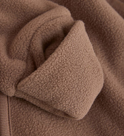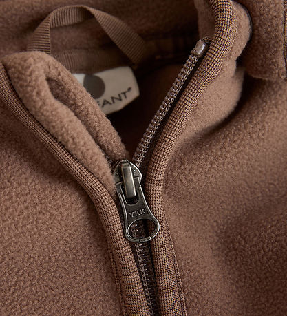 En Fant a des manches longues avec possibilité de revers, des jambes longues et une capuche amovible. La combinaison polaire s'ouvre par un zip au niveau du cou et descend jusqu'à la jambe droite. Le costume est confectionné dans une belle qualité polaire.