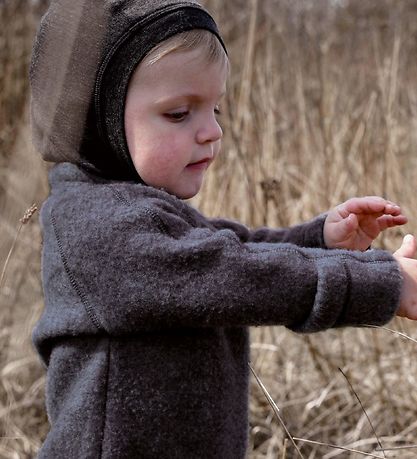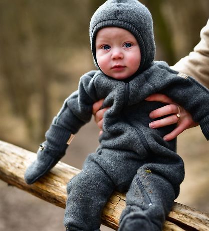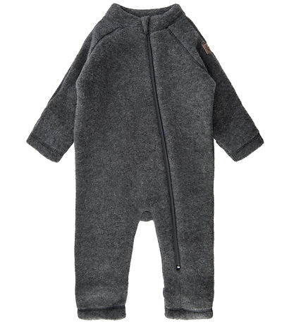 Délicieux combi de combinaison pour poussette Mikk-Line en gris anthracite chiné, laine feutrée.