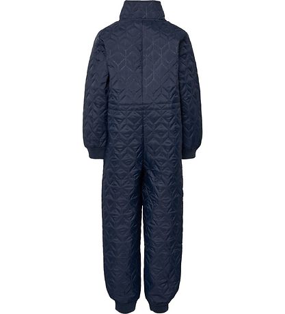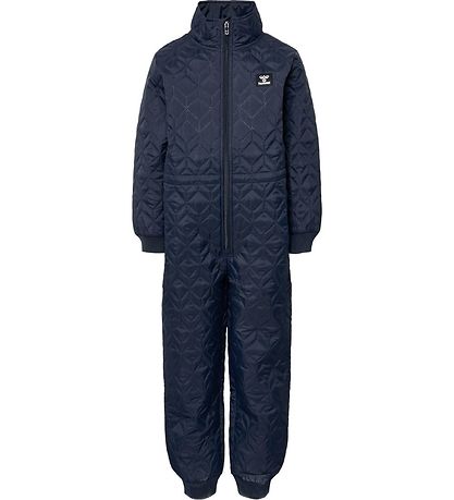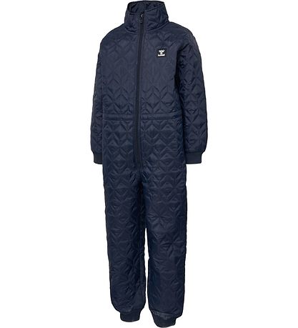 Combinaison thermique fine Hummel de couleur bleu marine uniforme avec une structure matelassée. La Combinaison thermique porte un logo noir et blanc sur la poitrine gauche.