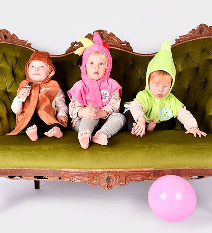 Den Goda Fen est fait de plys verte et blanche et se compose d'une cape avec une capuche. Au dessus de la capuche il y a une pointu verte, et de chaque côté de la cape il y a deux détails blancs. La cape s'ouvre sur le devant avec du velcro, et il y a des bandes élastiques sur les côtés pour que les deux côtés restent ensemble. Sur le devant, il y a une petite photo de Dadda, il n'y a donc aucun doute sur qui elle représente.