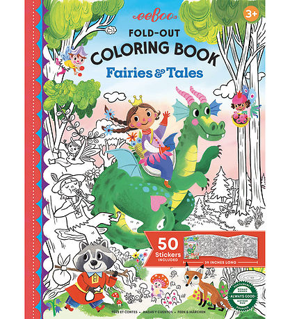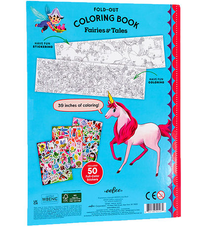 Joli livre de coloriage pliable Eeboo avec motifs de fées et de conte de fée. Contient 50 autocollants à décorer.