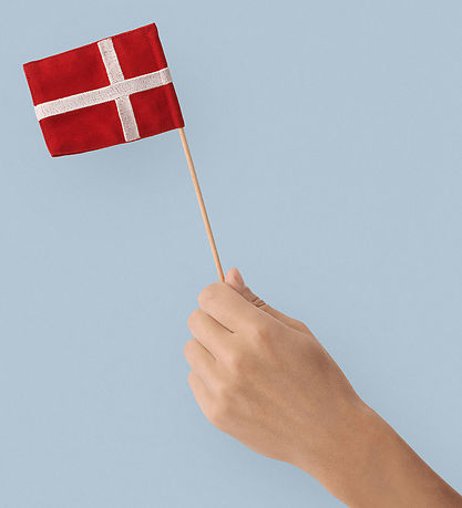 Joli drapeau Kay Bojesen aux couleurs de Dannebrog. Le drapeau est fait d'un textile rouge résistant avec une croix blanche brodée.
