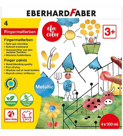Adorable peinture au doigt Eberhard Faber en quatre couleurs métalliques différentes : Jaune, rouge, vert et bleu.