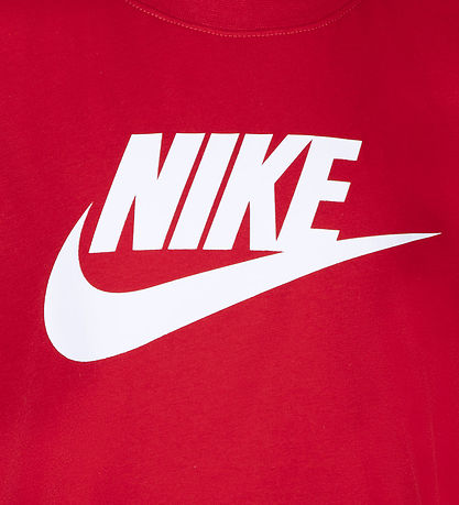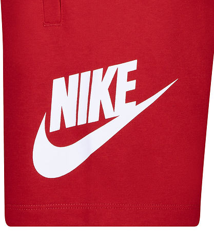 ensemble de shorts Nike Smart en rouge composé d'un t-shirt et paire' un short, tous deux avec des imprimés de logo blancs.
