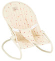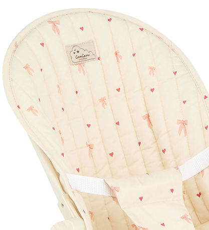 Jolie chaise de poupée Cam Cam Copenhagen en crème avec un joli imprimé all-over de coeurs et de nœuds roses.