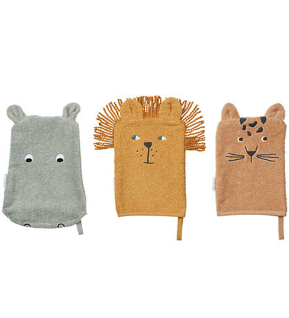 Magnifiques gants de toilette Liewood vendus dans un 3 Pack avec différents designs :