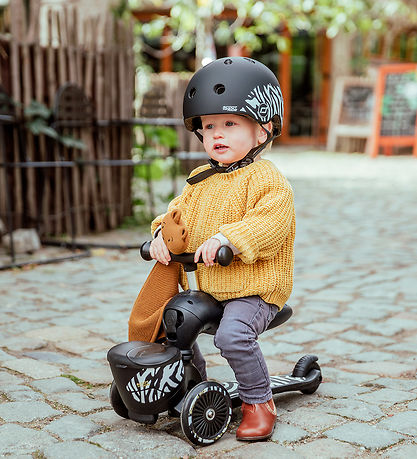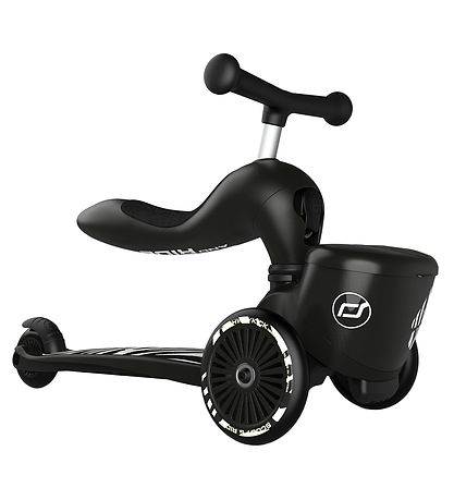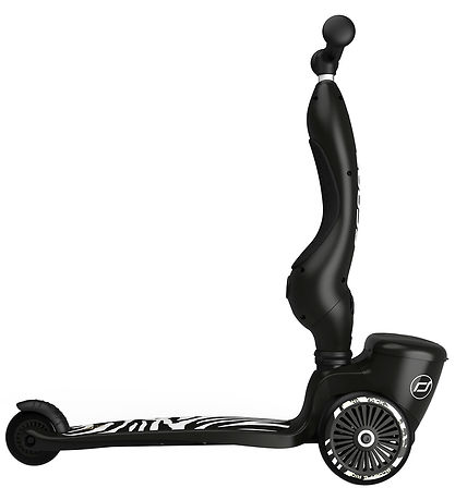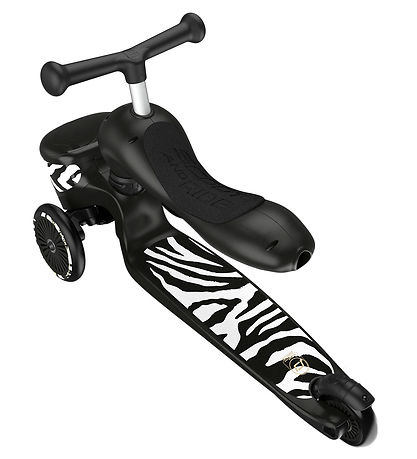 Fine Scoot and Ride Highway Kick 1 Lifestyle en noir avec des détails blancs et des détails imprimé leopard.