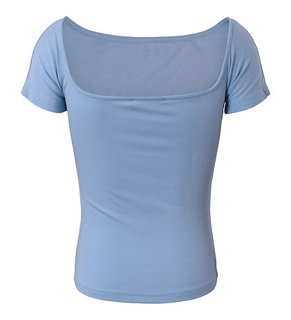 T-shirt Nice Hound de couleur bleue avec une jolie encolure bateau, qui monte haut sur le devant et descend jusqu'aux omoplates à l'arrière.