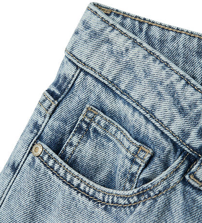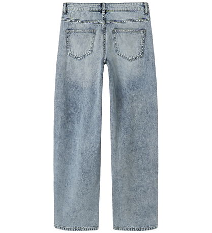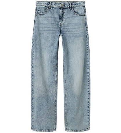 Jean LMTD élégant en denim bleu clair. Ce jean présente une coupe décontractée avec une jambe ample. Il est doté d'une à la taille élastique ajustable par des boutons à l'intérieur. Il est doté de passants de ceinture pratiques et se ferme à l'avant par un bouton et une fermeture éclair. Il comporte deux poches et une petite poche à monnaie à l'avant, ainsi que deux poches arrière.
