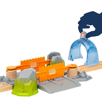 Passage à niveau Smart BRIO World. Inclut un Tunnel Smart Tech avec des effets sonores et lumineux captivants au passage du train.