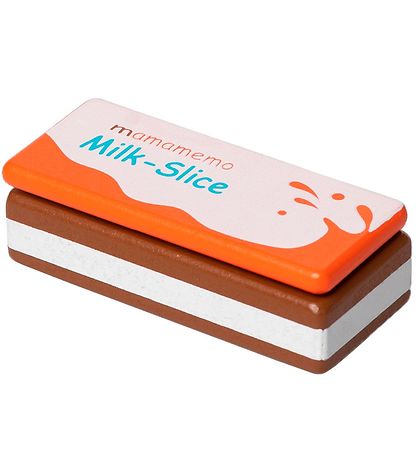 Le jouets de nourriture MaMaMeMo est fabriqué en bois, où la partie lait est en deux parties, car l'emballage peut être retiré avec du velcro.