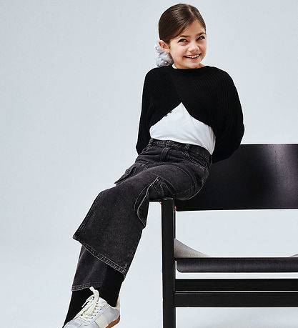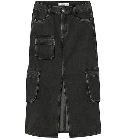 Jolie jupe Name It en denim noir classique avec des poches pratiques et une fente tendance sur le devant. Le design donne un look moderne qui convient à différentes occasions.