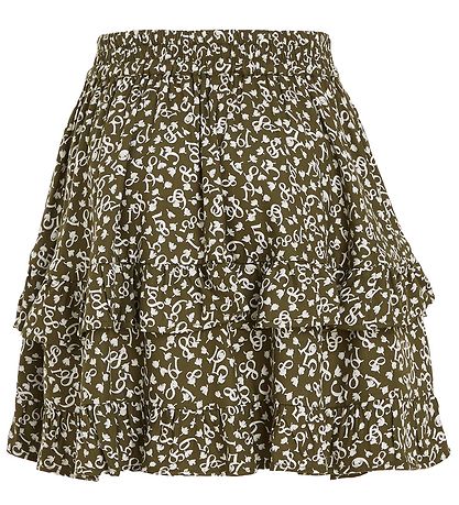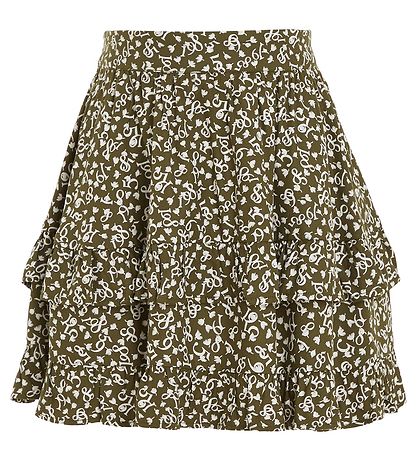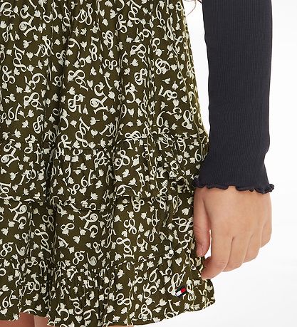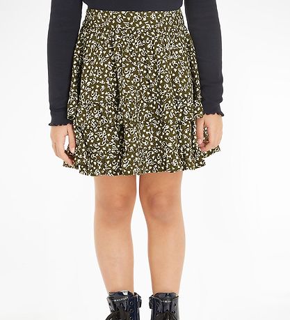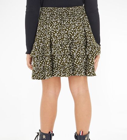 Jolie jupe Tommy Hilfiger vert avec un motif de nombres et de fleurs (avec les numéros 1985) en blanc.